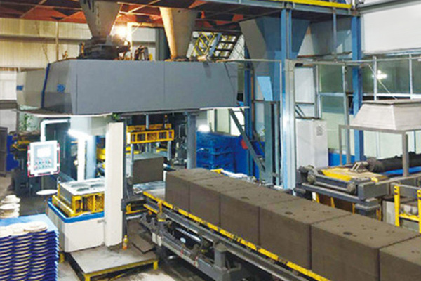 造型工序簡單,無砂箱翻轉、回轉動作,能耗低,造型動作穩定、可靠模板反壓作用,型腔面硬度達到要求時,其背面硬度低于型腔面硬度,砂型透氣性良好。對于普通灰鐵件,建議采用平板式壓鐵;對于一些復雜球鐵件,建議采用專用夾板式壓鐵,而且均帶有壓鐵清掃機構